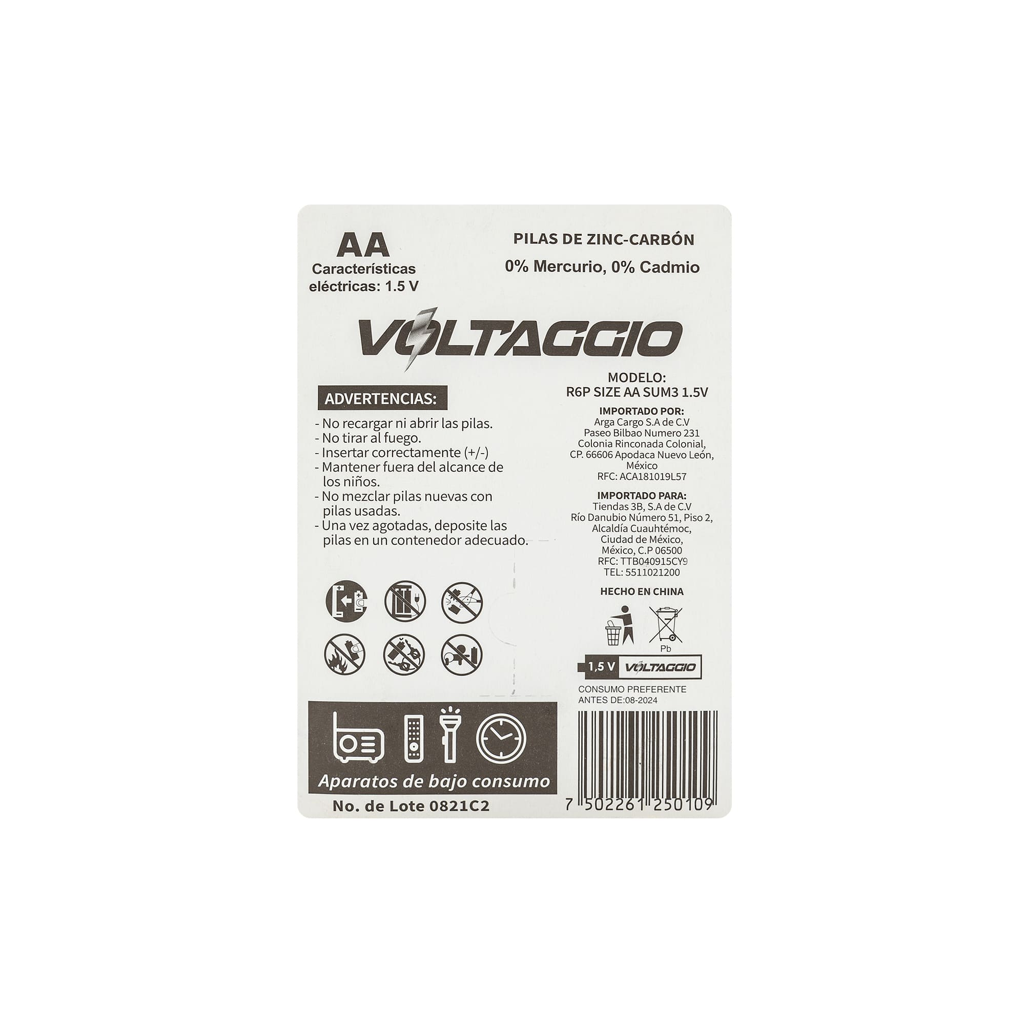 Potencia tus dispositivos con el pack de 4 pilas AA alcalinas Voltaggio. Perfectas para controles de videojuegos y electrónicos inalámbricos, estas pilas de 1.5V ofrecen un rendimiento confiable. Su diseño cilíndrico asegura un ajuste perfecto en cualquier aparato. Recuerda no mezclar pilas nuevas con usadas y mantenerlas fuera del alcance de los niños. Con una vida útil prolongada, son la opción ideal para quienes buscan calidad y seguridad. ¡No te quedes sin energía en tus momentos de diversión!