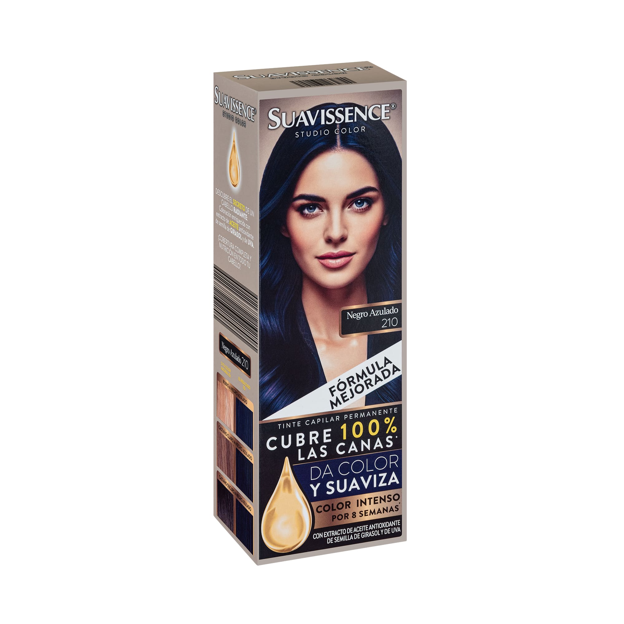 Descubre el Tinte Negro Azulado Suavissence, tu aliado perfecto para un cabello radiante. Este kit incluye crema reveladora, pasta de coloración, guantes y acondicionador. Ideal para quienes buscan un rubio caramelo intenso, ofrece máxima cobertura de canas y una duración prolongada del color. Su fórmula con extracto de uva y girasol nutre y protege tu cabello, asegurando tonos vibrantes sin resecar. Perfecto para usar en casa, es fácil de aplicar y te brinda resultados profesionales a un precio accesible. ¡Transforma tu look hoy!