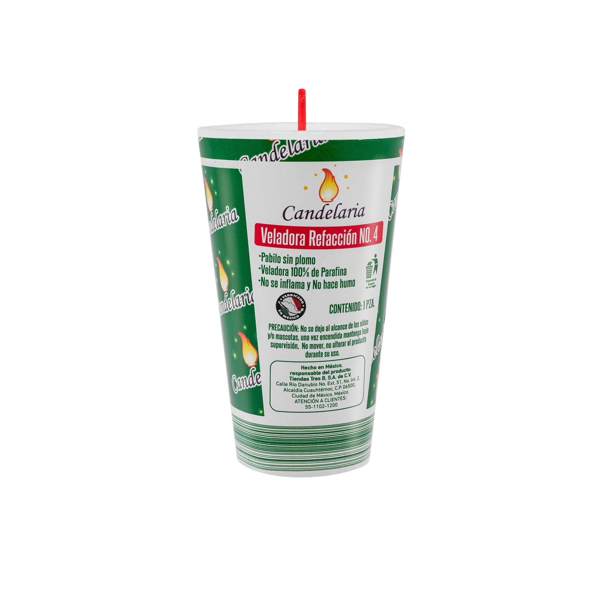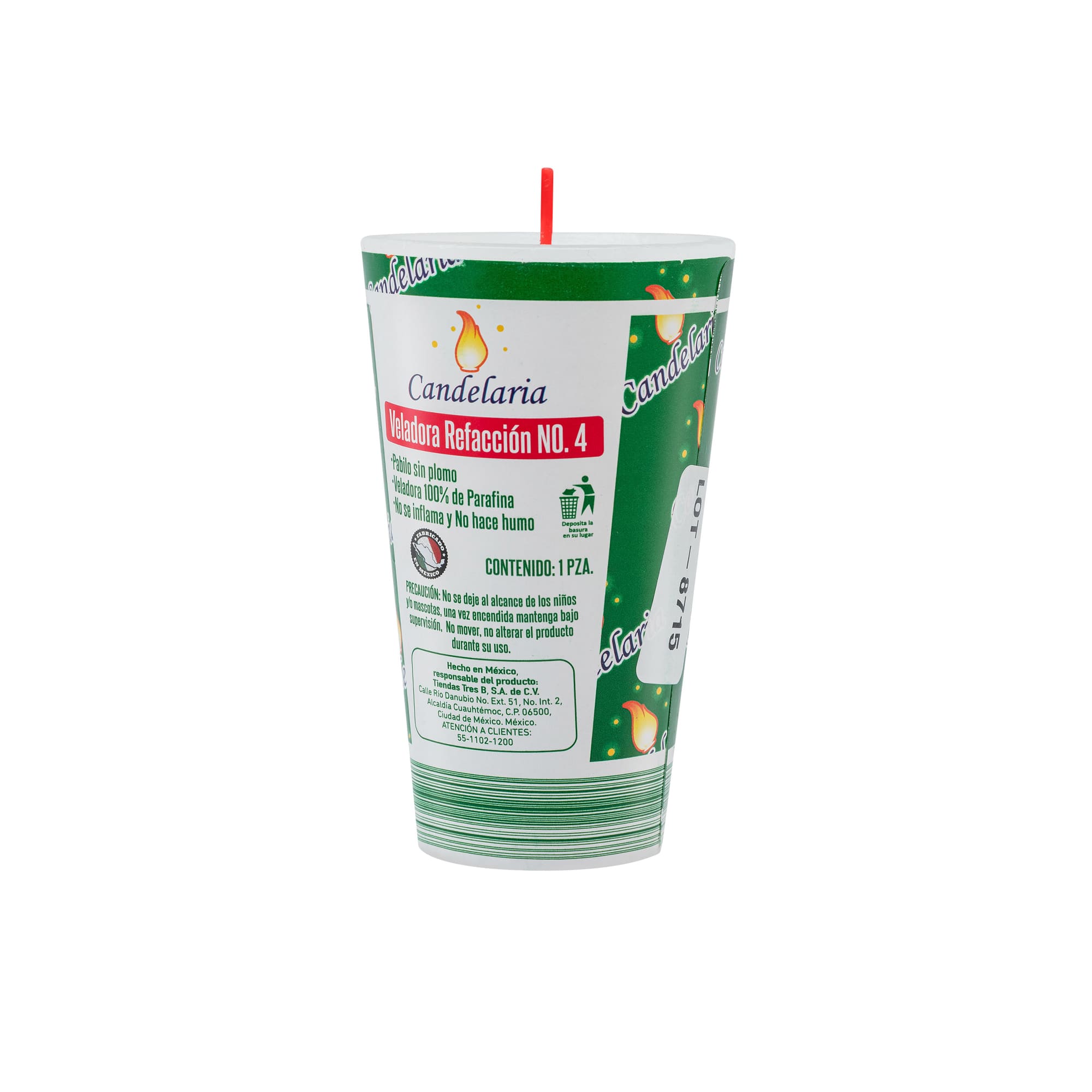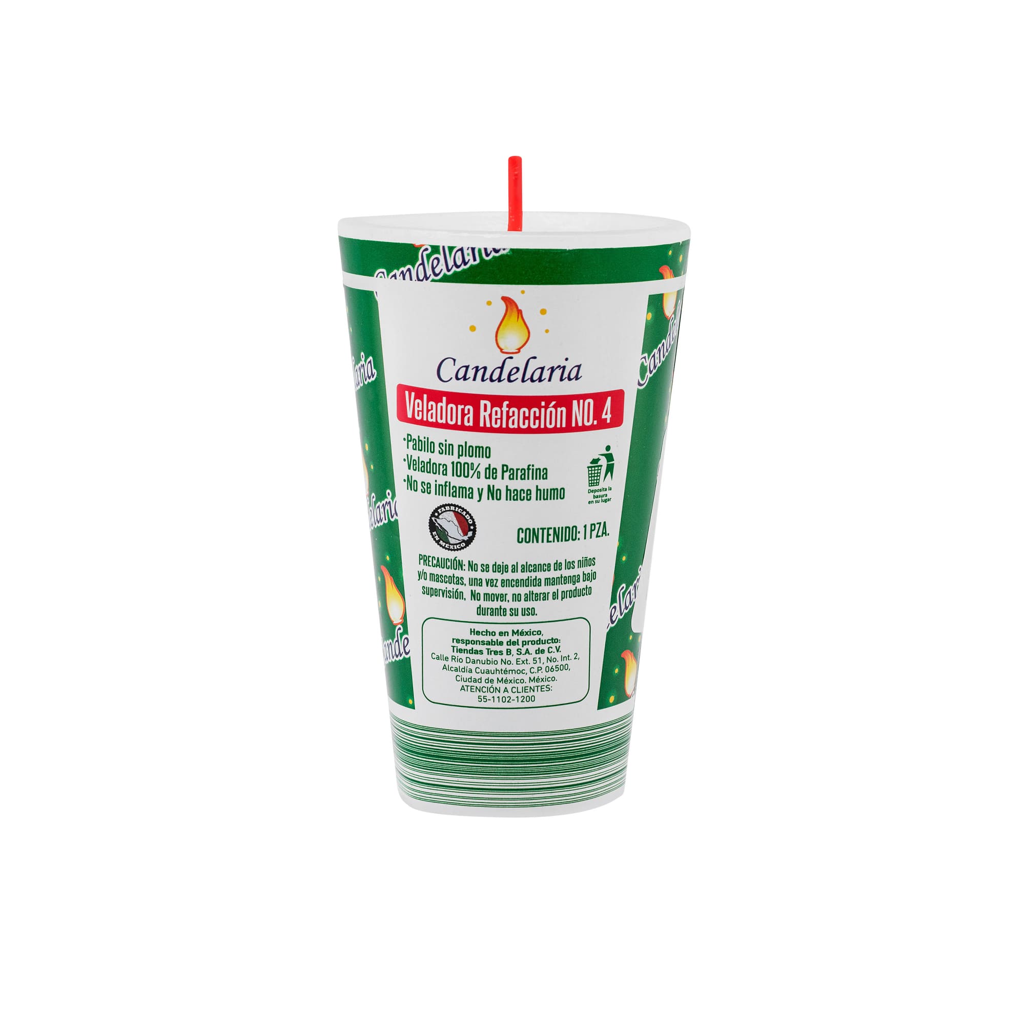 Descubre la Veladora refacción 4 Candelaria, perfecta para iluminar tus momentos especiales. Con un diseño práctico y dimensiones de 6.57 cm de diámetro y 13 cm de altura, esta veladora ofrece una flama continua y estable, libre de humo negro. Su mecha de parafina garantiza un encendido rápido y duradero. Ideal para usar en casa, solo asegúrate de colocarla en superficies resistentes al calor y fuera del alcance de niños y mascotas. Elige calidad y seguridad, y transforma tu espacio con esta veladora hecha en México.