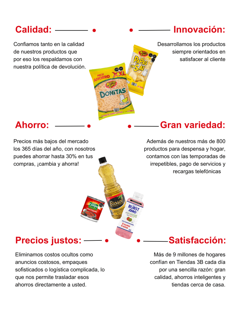 En Tiendas 3B, nuestro compromiso es simple: ofrecerte la mejor calidad posible al precio más bajo que puedas imaginar.