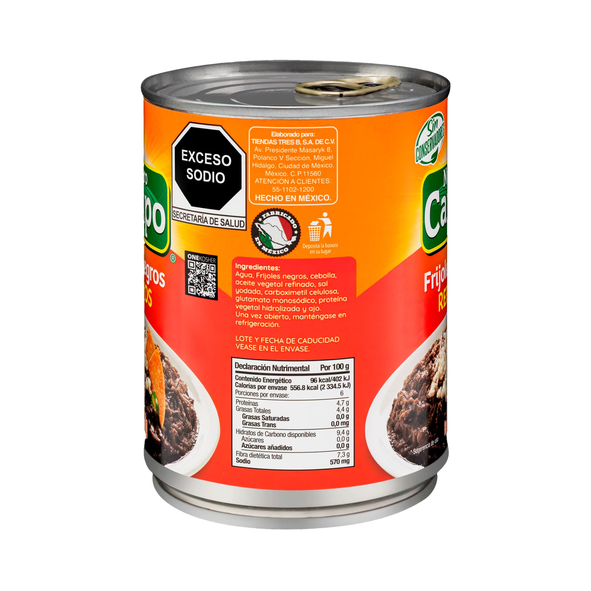 Dale un toque especial a tus comidas con nuestros frijoles refritos negros. Listos para calentar y servir, son perfectos para tacos, burritos o como guarnición. Hechos con ingredientes naturales y sin conservadores, ofrecen un sabor auténtico y saludable. Su lata con abrefácil facilita su uso, haciendo que cada comida sea rápida y deliciosa. ¡Elige calidad y sabor con Nuestro Campo!