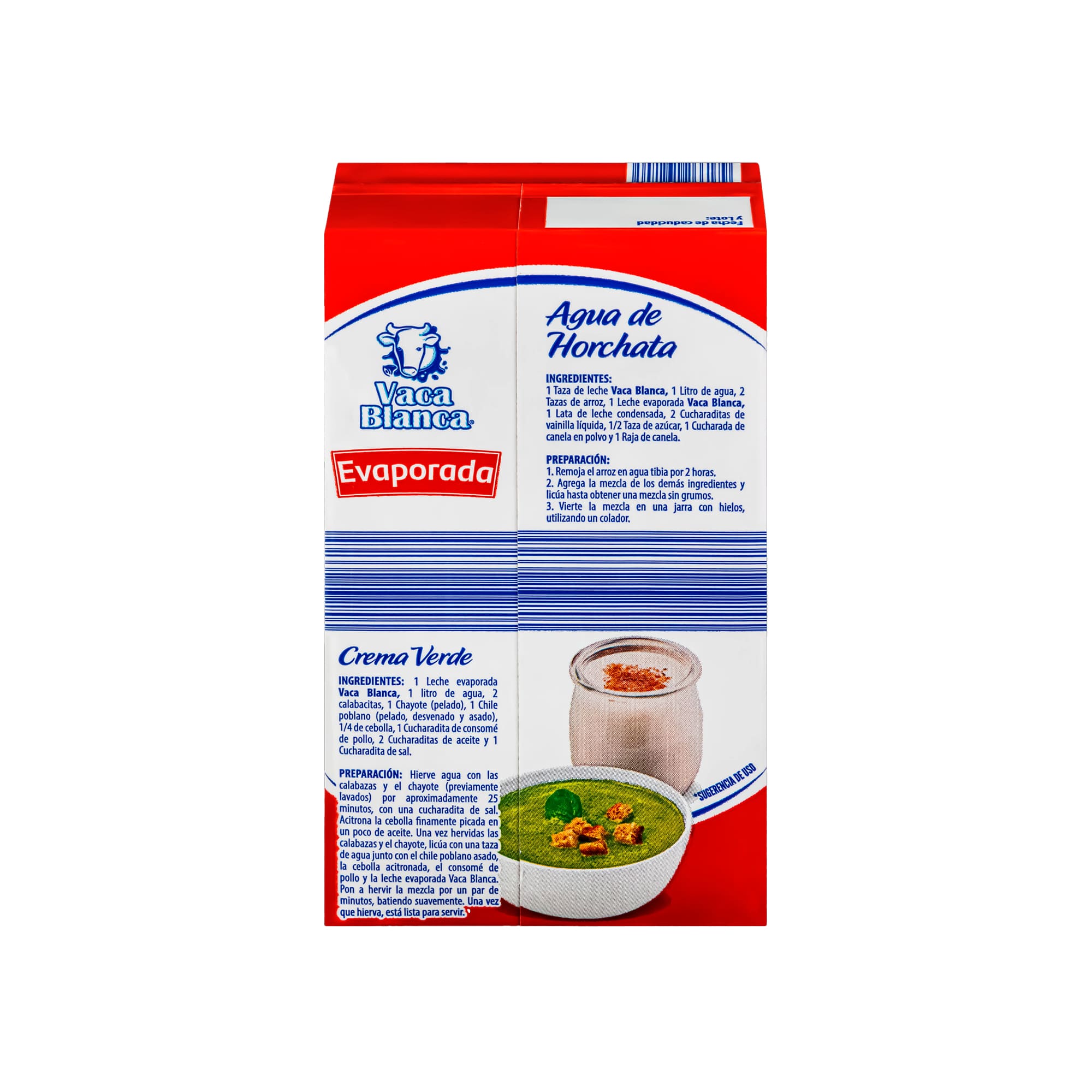 ¿Quieres darle un toque cremoso a tus recetas? La Leche Evaporada Vaca Blanca 250 ml está hecha con leche 100% de vaca, descremada y ultrapasteurizada para conservar su frescura. Enriquecida con vitaminas A y D, es perfecta para preparar postres, platillos salados o sustituir la leche convencional en recetas que requieren más sabor y textura. No necesita refrigeración antes de abrirse, lo que la hace práctica y conveniente. ¡Calidad y versatilidad en cada gota!