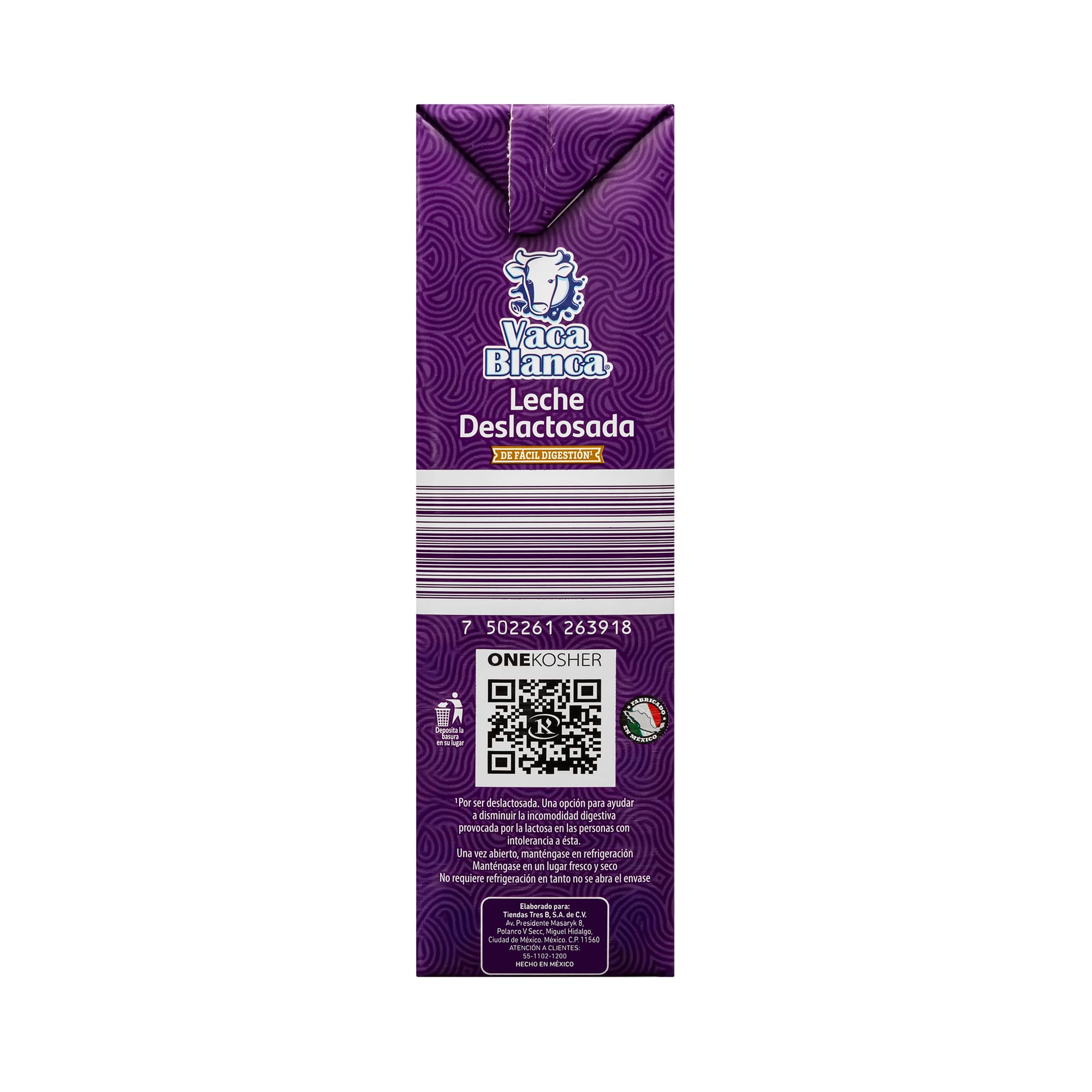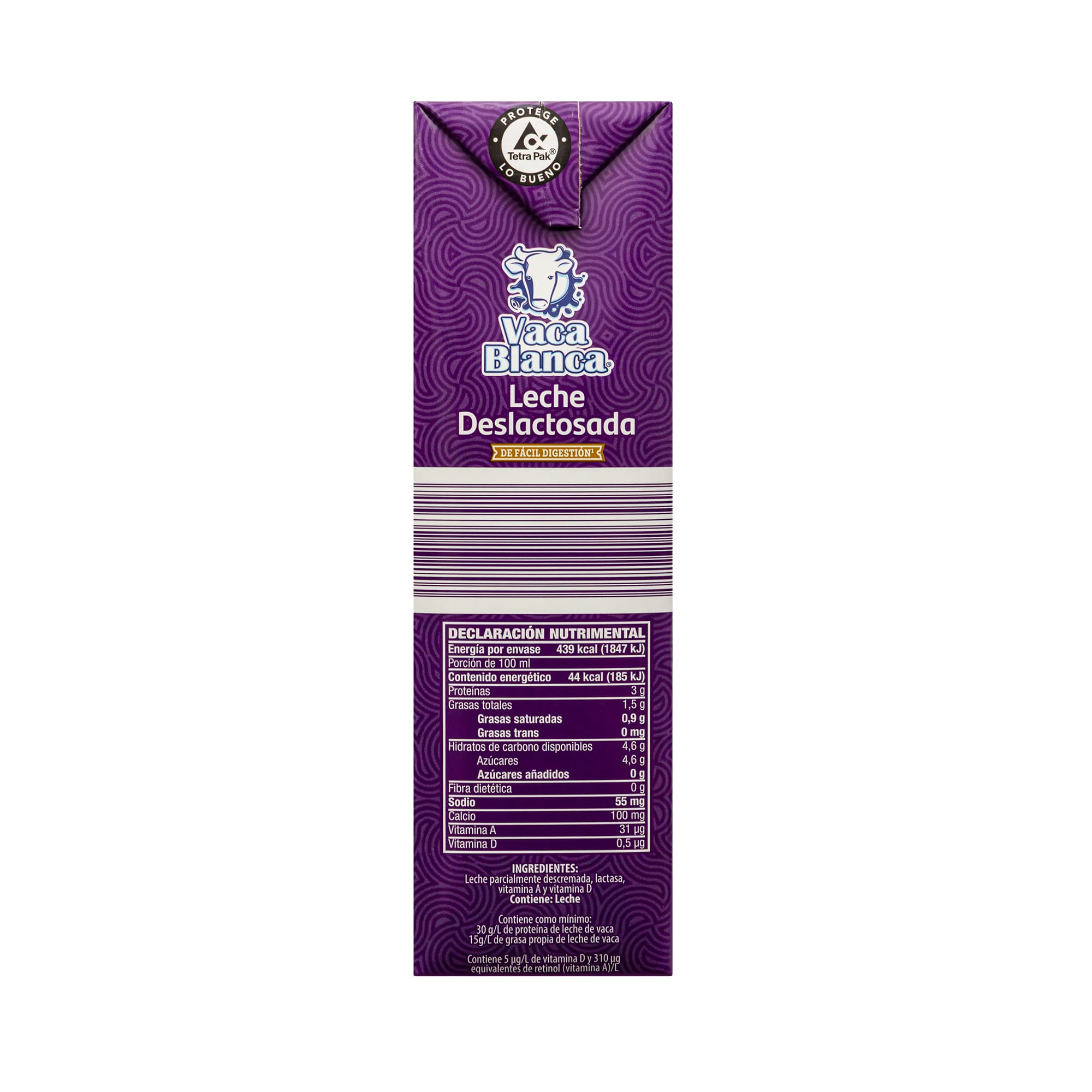 Disfruta el sabor auténtico con la Leche UHT Deslactosada Vaca Blanca. 100% de vaca, ultra pasteurizada y parcialmente descremada para una digestión ligera. Enriquecida con vitaminas A y D, es ideal para tu café, licuados o recetas diarias. Perfecta para quienes buscan nutrición y comodidad sin lactosa. ¡Hazla parte de tu rutina saludable!